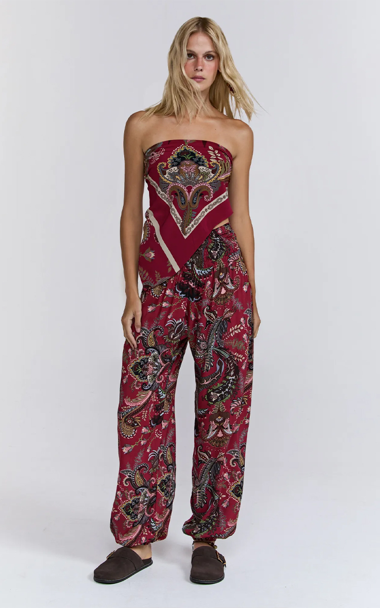 A Calça Lenir é a expressão máxima do conforto aliado ao luxo. Com uma modelagem pantalona de pernas amplas, esta peça foi desenhada para proporcionar um movimento dramático e sofisticado a cada passo. O tom vermelho vibrante traz energia e personalidade, tornando-a a protagonista de qualquer look resort ou urbano.