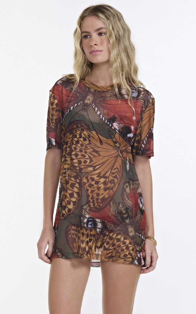 A Camiseta Alicia Borboletas é leve e estilosa. Com modelagem reta e comprimento alongado, transparência sutil. O tecido em tule confere um toque delicado e contemporâneo, ideal para sobreposições criativas e looks cheios de personalidade. Perfeita para quem busca peças versáteis com um visual moderno e feminino.