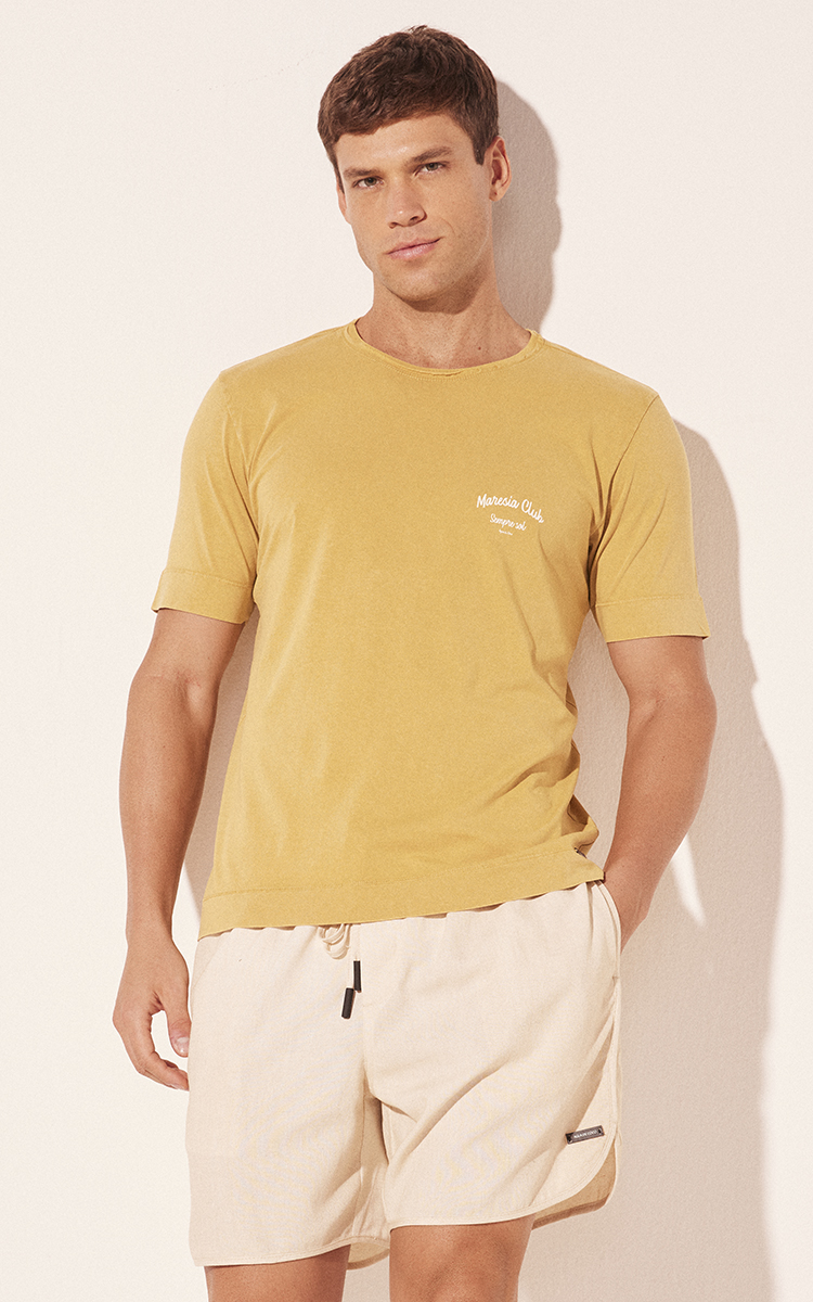 A Camiseta Manga Curta Silcada Marítimo Amarelo, confeccionada em malha de algodão, traz gola careca e efeito marmorizado que garante visual moderno e leve. O silk escrito aplicado no peito e nas costas adiciona personalidade e estilo.