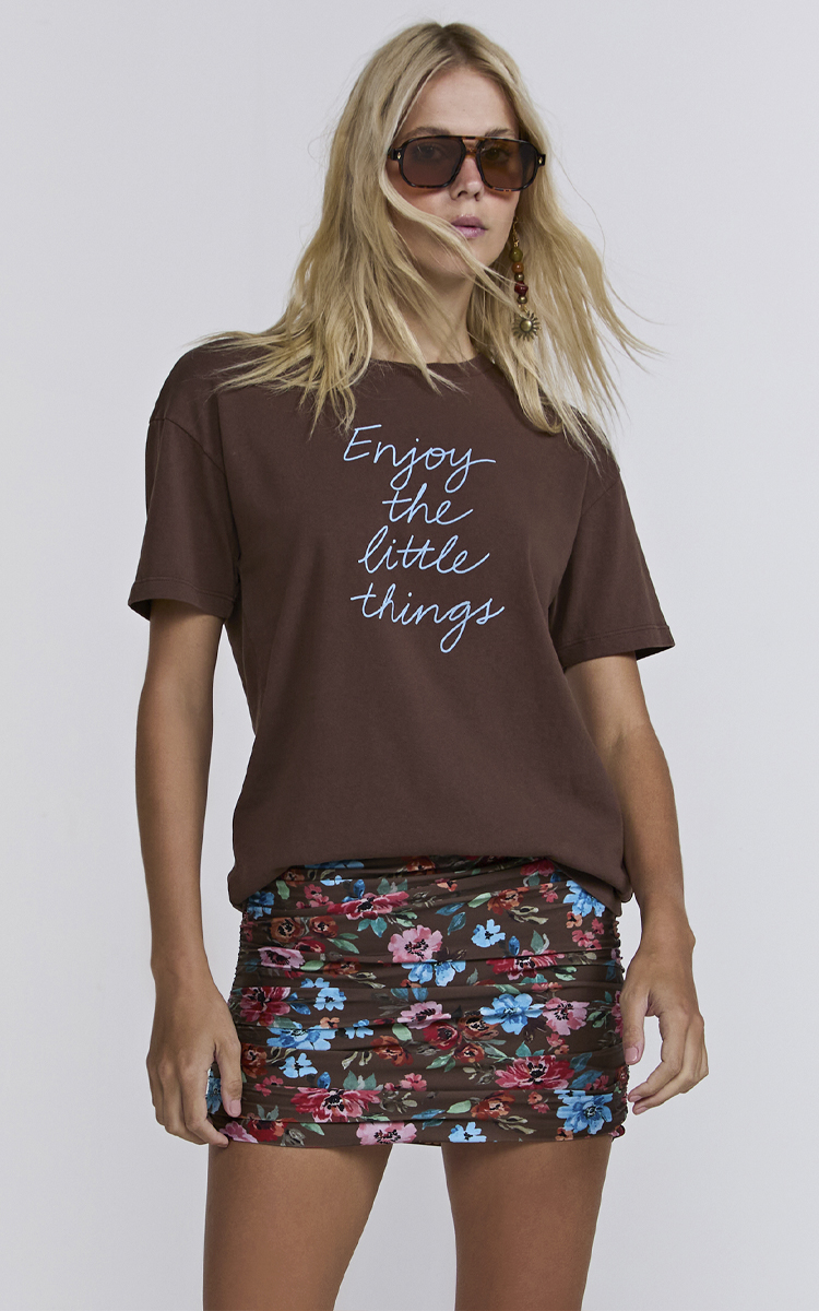 A Saia Lala Floral Brown foi desenhada para quem busca praticidade sem abrir mão do estilo. Com a estampa exclusiva da família Floral Brown, ela apresenta um fundo marrom profundo adornado por flores em tons vibrantes de azul e coral, permitindo combinações harmônicas com os biquínis da mesma coleção.