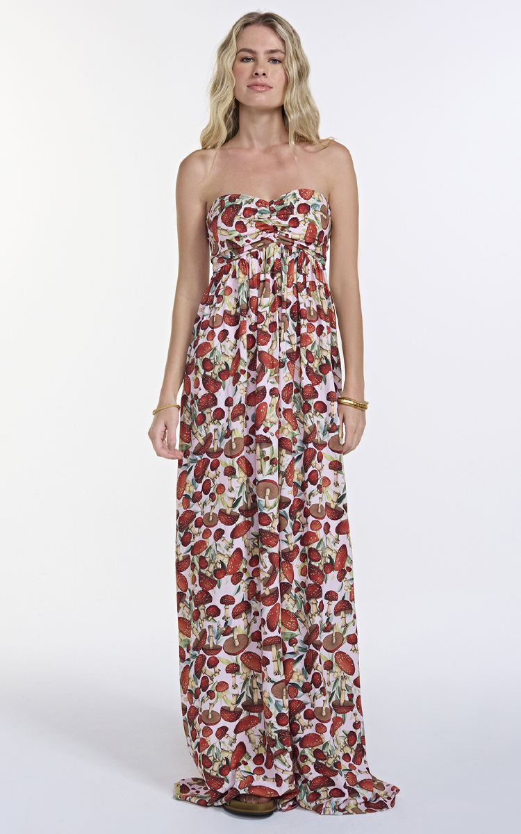 O Vestido Sol possui modelo tomara que caia, busto drapeado proporcionando charme e feminilidade. Modelagem solta, trazendo movimento e conforto, ideal para compor looks versáteis da praia à cidade.
